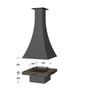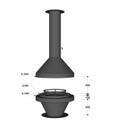 Fireplace insert: cast iron Hanging steel dome Door: no doors / open system Chimney diameter: Ø 300 mm Flue damper