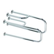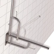 Prevedeno na hrvatski: Preklopni potporni rukohvat u obliku slova U neophodna su pomagala koja podržavaju kretanje oko umivaonika i WC-a.